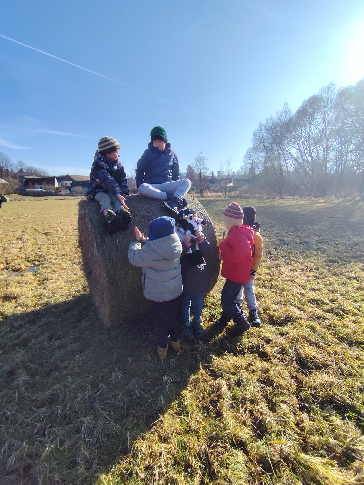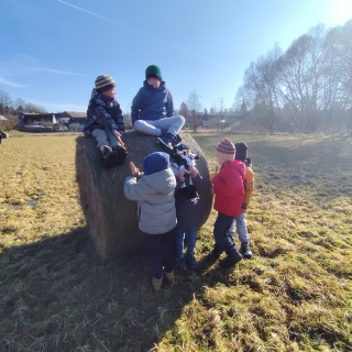Proto jsme se s dětmi vydali na procházku, během které jsme na louce objevili balíky slámy. Děti si je s nadšením užívaly, lezly, běhaly a radovaly se, i když bláto bylo opravdu všude. Nechyběl smích, pohyb a dobrá nálada.